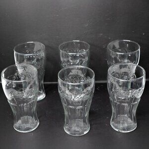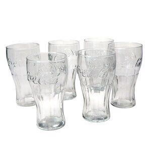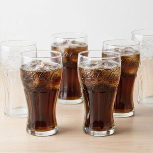 Bring a piece of classic Americana and nostalgia to your kitchen or bar with this iconic set of six (6) genuine Anchor Hocking Coca-Cola glasses. These tumblers feature the distinct contour shape, modeled after the original Coca-Cola bottle, with the logo embossed right into the glass for a timeless, easy grip.