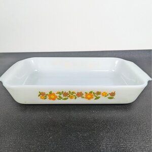 Vintage Anchor Hocking Fire King Rectangular dish 1.5 Quart Gingham Flower