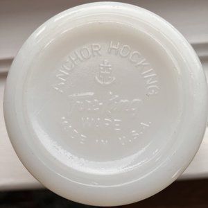 2 Stackable Anchor Hocking Fire King Stackable Mugs - Milk Glass / Flower Pattern