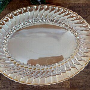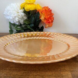Vintage Anchor Hocking Fire-King Peach Luster Oval Serving Platter Ribbed Edge