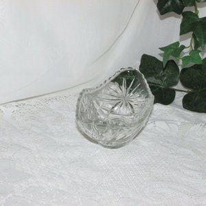 Gondola shaped relish dish in the EARLY AMERICAN PRESCUT GLASS pattern, sometimes known as STAR OF DAVID. A beautiful piece manufactured by Anchor Hocking, most likely in the late 1960's or early 1970's.