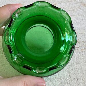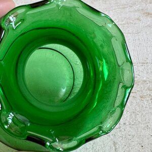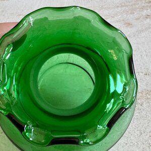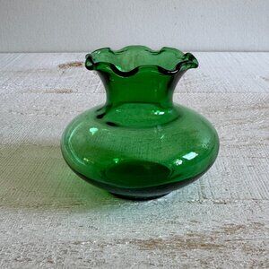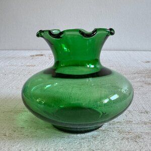 Vintage Anchor Hocking Green Glass Vase with Ruffled Edge
