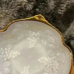 White Milk Glass Grape Vine with Gold Guild Edges Bowl