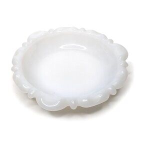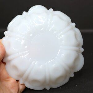 Vintage Anchor Hocking White Milk Glass Thumbprint Round Ashtray MCM
