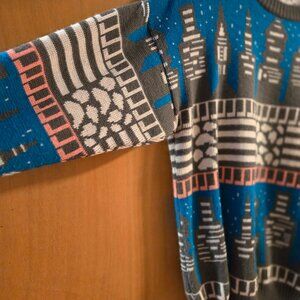 Vintage Andrew St. John Sweater — Excellent Condition, Rare Skyline Motif