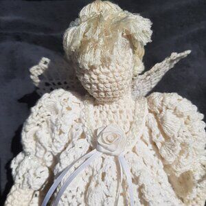 Vintage Angel Doll Hand Crafted Crochet 14” Christmas Ornament
