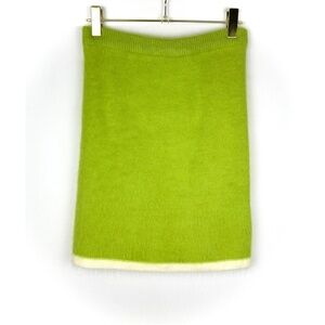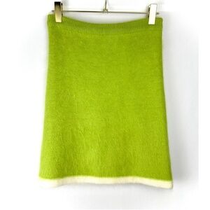 Vintage Angora Sweater + Skirt in Brat Green & White • 2 Piece Set • Fuzzy Teddy Bear • Crewneck • Bell Sleeve • Pencil Skirt • MCM • XS/S