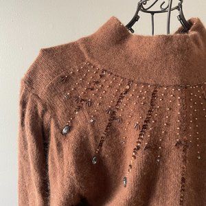 Vintage Angora Sweater with Rhinestone Detailing Made in Italy Gaia Golf Firenze