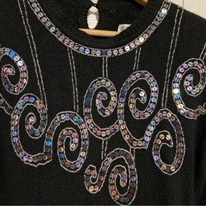 Vintage Angora Wool Silk Blend Bedazzled Embroidered Sequins Cozy Sweater Large