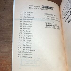 Vintage Animorphs children’s series- book #21 The Threat by Scholastic editions by K.A. Applegate.