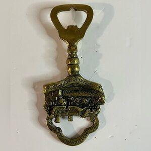 This vintage bottle opener features a beautifully detailed depiction of Anne Hathaway’s Cottage, a historic landmark in Stratford-upon-Avon. Crafted from solid brass, it celebrates the charm of Shakespearean England. The embossed design highlights the iconic thatched roof and surrounding greenery, making it a meaningful collectible or practical piece for everyday use. A wonderful gift for collectors, history lovers, or those with a passion for literary treasures.