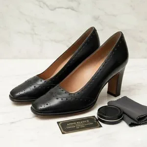 Vintage Anne Klein Black All Leather Wingtip Oxford Pumps Square Toe Italy 6