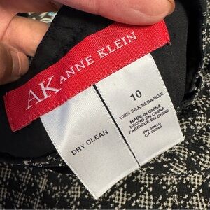 Anne Klein Black Cream Silk Skirt Size 10 Houndstooth Midi Workwear Classic
