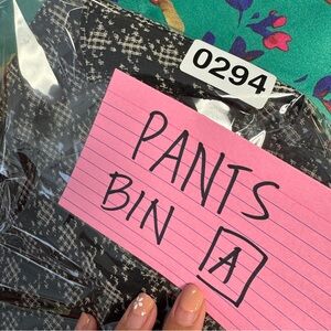 • Key design details: Black and cream houndstooth geometric print pattern. Velvet waistband accent and side zip closure.
