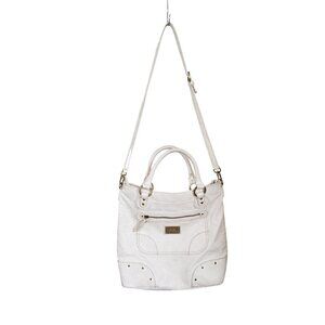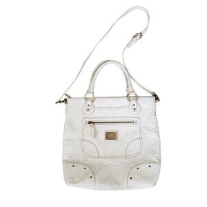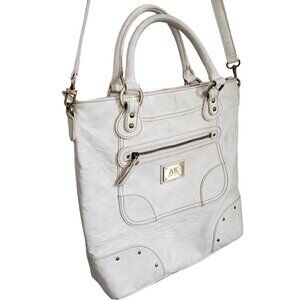Vintage Anne Klein Cream Leather Studded Tote Bag With Shoulder Strap