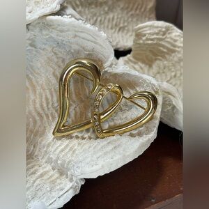 Vintage Anne Klein II Gold Plated Double Heart with Crystal Brooch
