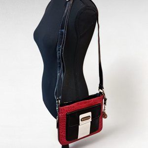 Vintage Anne Klein Red Reptile Embossed Black Patent Leather Vegan Crossbody