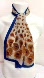This striking vintage Anne Klein scarf was made for The Vera Companies and is crafted from pure silk. It features a bold peacock feather design in golden brown, rust, and cobalt blue against a soft cream background, framed with a deep royal blue border. The elongated shape (11″ x 52″) makes it perfect for wearing draped, tied, or as an elegant accessory on a handbag. In excellent condition overall, with one tiny hole noted (see photos). The scarf remains vibrant and wearable, with a smooth silk drape that showcases the detailed feather print beautifully.