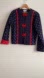Vintage. Anne Marie. Cotton with polyester lining. Quilted. Fabric toggle closure. Navy with red accents. Paisley print. Sleeves have contrasting fabric when cuffed. Boxy shape. Excellent condition.