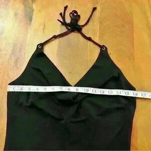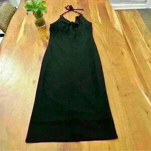 Vintage Anne.X Sexy Halter Cow Neck Minimalist Glam Cocktail Evening Formal Event Black Maxi Dress with Adjustable Tie on the Back.