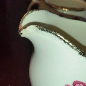 Vintage Anniversary Rose dishes made in Staffordshire England for Royal Swan in the early to mid 1900’s Edged in 22 Kt Gold.. This set of bone China almost 100 years is in very good conditon,