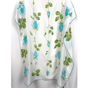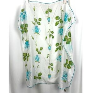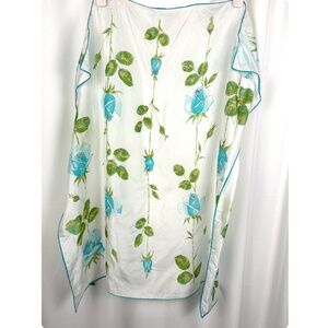 intage ‘Another Hit’ Square White + Blue Roses Rayon Scarf • Hand Stitched Rolled Hem • Neck Scarf • Lightweight • Japan • Silky