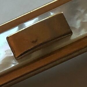 Vintage Anson white abalone and gold coloured metal tie clip- There is a slight discolouration on the middle of the clip but is a beautiful tie clip.