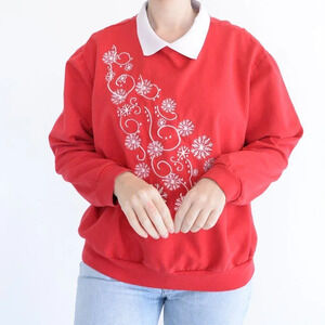 Vintage Anthony Richards Christmas Snowflakes Red Collared CrewNeck Sweater M
