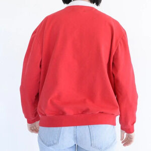 Step into the festive spirit with the Vintage Anthony Richards Christmas Snowflakes Red Collared Crew Neck Sweater. This charming piece encapsulates the joy and warmth of the holiday season, perfect for spreading cheer wherever you go.
