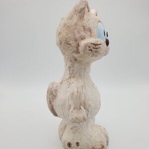 Vintage Anthropomorphic Cat Figurine Textured Terracotta Big Feet Cute Face