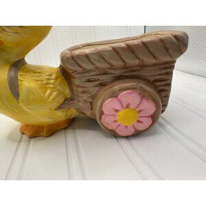Vintage Anthropomorphic Duck Wagon Planter Kitsch Yellow Brown Succulent Spring