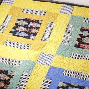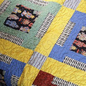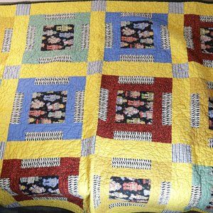 Vintage Antique Hand Made Robot Quilt Blanket 5x6