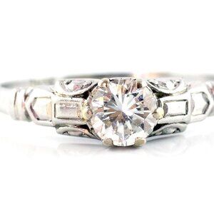 Vintage Antique Platinum Natural Diamond Art Deco Solitaire Engagement Ring