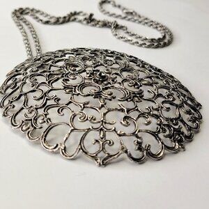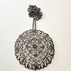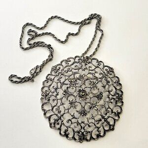 Vintage Antique Silver Statement Pendant Filigree Round Pendany