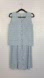 top is sleeveless with pin tucking and buttons down front, unlined