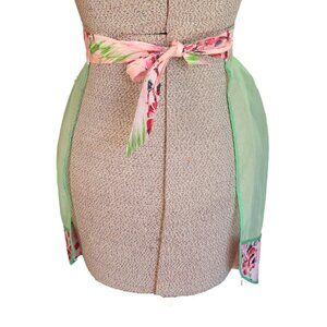 For your consideration is a vintage half apron made out of an apple green chiffon accentuated with a cotton floral, circa 1950's.