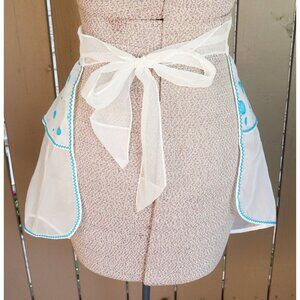 Vintage Apron Christmas Chiffon White With Blue Polka Dots Half Apron 1950s