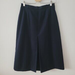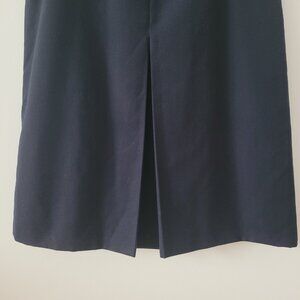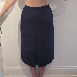 In my estimation, this is a very dark navy when light is directly shone on it. Despite its vintage, outer skirt is in like new condition. Lining has some runs (see 4th to last picture). Size zipper + button closure. Pleat on front and back.