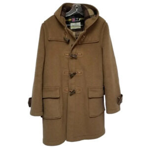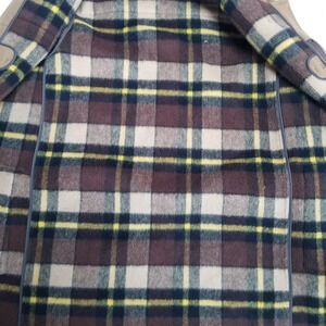 Vintage Aquascutum Brown Wool Duffle Coat Hooded Blanket Plaid Lined
