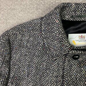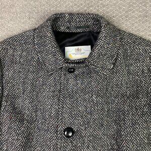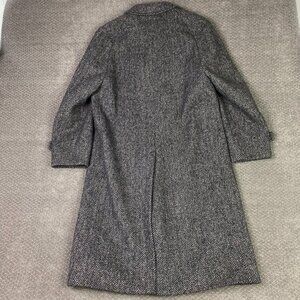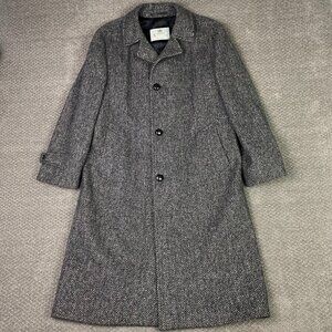 Vintage Aquascutum Herringbone Tweed Overcoat Topcoat Coat Men's 42R Gray Wool