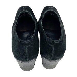 Vintage Aquatalia By Marvin K Wedge Size 8 black Suede Slip On Heel Shoes Whipstitch Accent