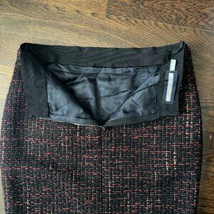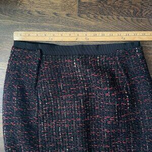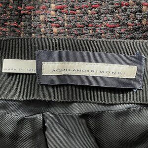 Selling a Vintage Aquilano Rimondi Tweed Italian Skirt wool/Cotton Blend-Sz.46 (US 10). Made in Italy. Fully lined. Beautiful Fall Tweed with Black/Tan/Red. 61% Wool, 18% Cotton, 12% Acrylic, 9% Acetate