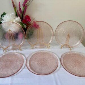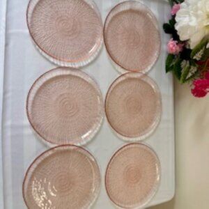 Vintage Arcoroc France Pink‎ Aspen Glass Plates Spiral Pattern Depression Style