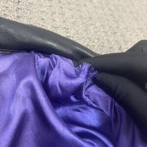 Has some minor flaws of small scuff on the front left chest and a fraying/split in the inside lining (see photos), and small white mark on the right sleeve, small scuff marks throughout