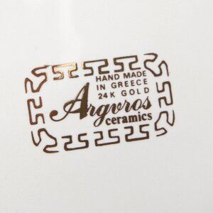 Vintage Arguros 24K Gold Greek Ceramic Cup & Saucer Set Handmade Greece White