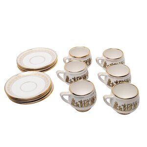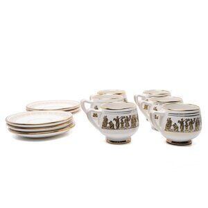 The Vintage Greek Arguros 24K Gold Ceramic Tea Cup & Saucer is a rare find that will add a touch of class to any occasion. Whether you're hosting a fancy dinner party or enjoying a quiet moment at home, this exquisite set is sure to impress.