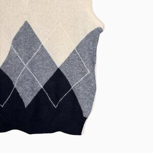 Vintage Argyle Sweater Vest Virgin Wool 90s Preppy Neutral Pullover