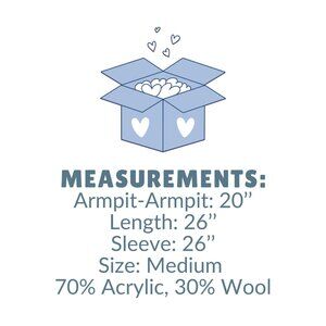 * Tagged as a Medium with flat lay measurements: 20” armpit to armpit, 26” length, 26” sleeve