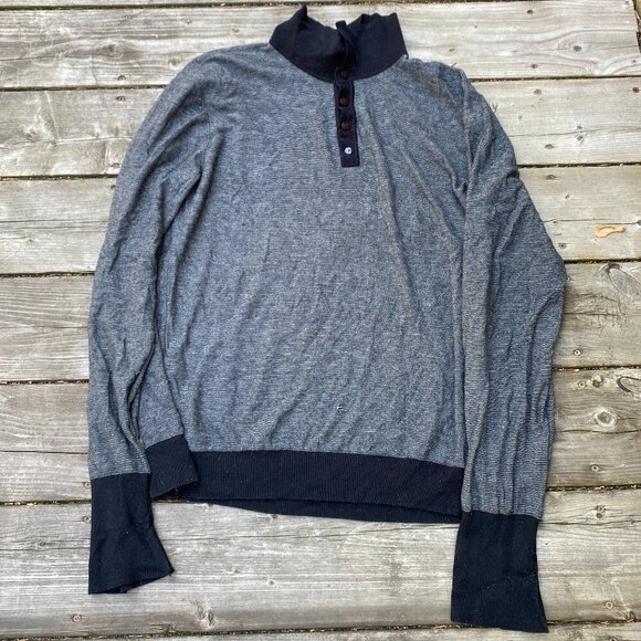 Vintage Armani Silk Blend Button Up Quarter Zip Sweater Large Gray
