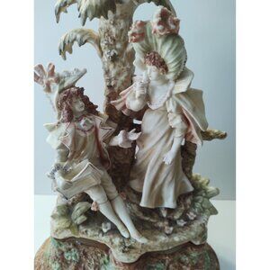 Vintage Arnart Figurine Ceramic Victorian 14" Tall Couple seated near Palm Trees
